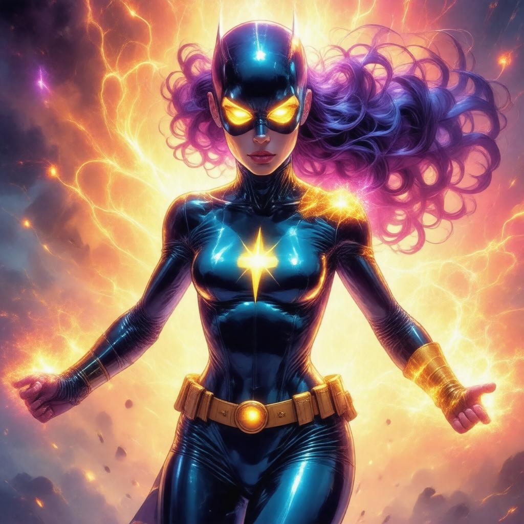 Generate an image of Spectra, also known as Spectre, a superhero character from DC Comics, in a dynamic pose showcasing their powers, in a comic book-inspired art style with vibrant colors and bold lines.
