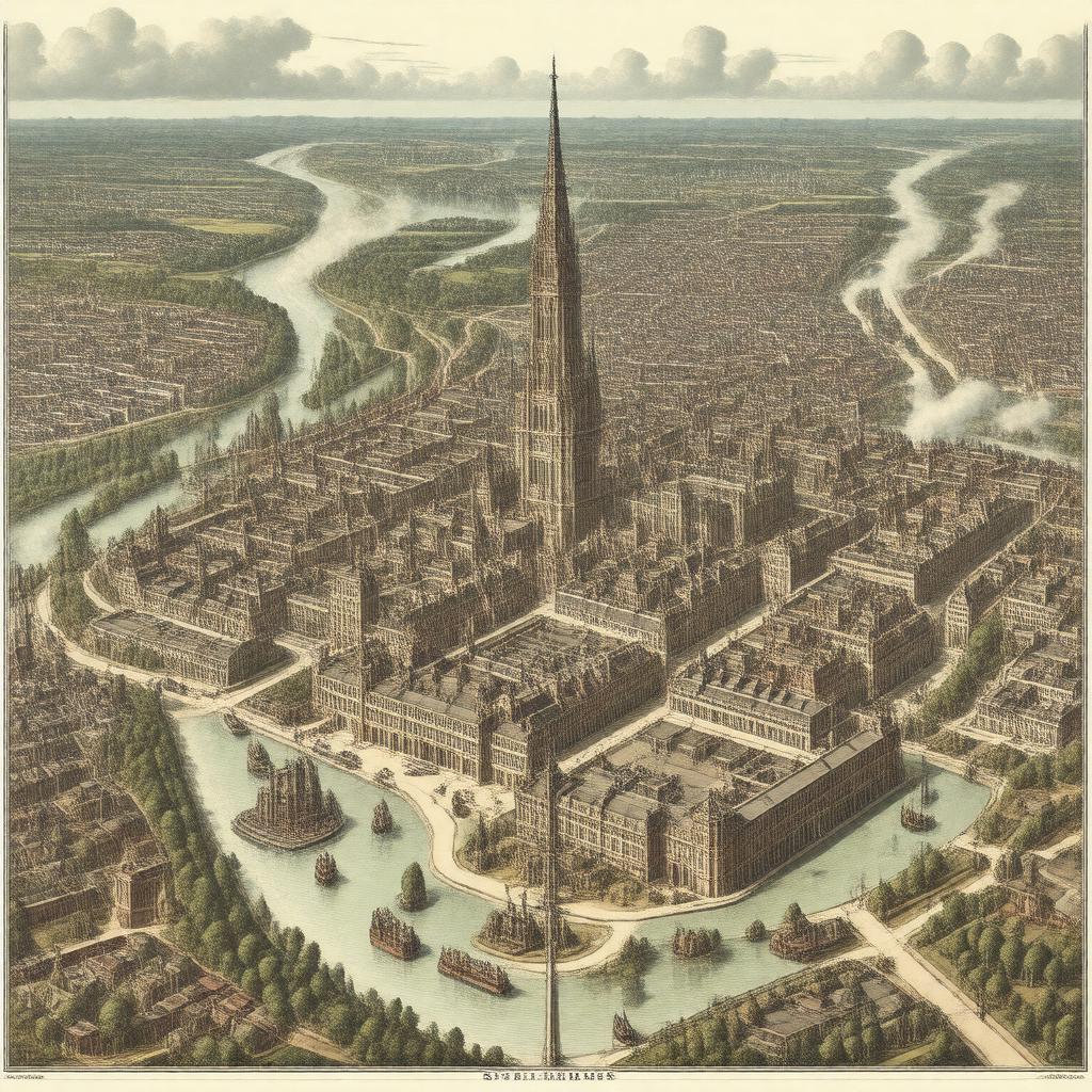 "Generate an image of a map of St. Helens, a town located in Merseyside, England, with notable landmarks such as The Dream sculpture, St Helens Town Hall, and The Citadel Arts Centre, surrounded by the River Mersey and Sankey Canal, with a subtle background of industrial and glassmaking elements, in a realistic style."