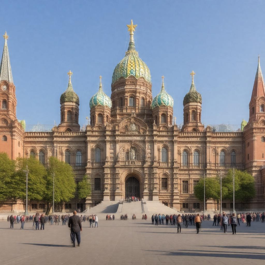 "Generate an image of the State Historical Museum, a grand Russian Revival-style building located on Red Square in Moscow, Russia, with its distinctive onion domes and ornate facade, surrounded by notable landmarks like the Kremlin and GUM, during a sunny day with a few people walking around, highlighting its stunning architecture and historical significance as a UNESCO World Heritage Site."