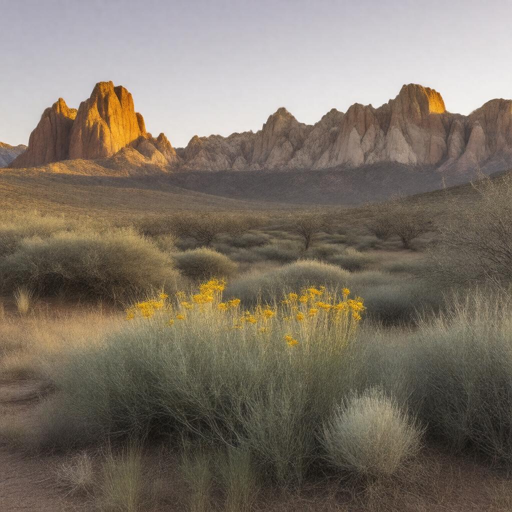 "Generate an image of a representative landscape of the State of Nevada, showcasing its unique natural features. Depict a scenic view of the Valley of Fire State Park with its vibrant red sandstone formations, surrounded by the Mojave Desert landscape, with the sun setting in the background, casting a warm orange glow. Incorporate the state flower, Sagebrush, in the foreground. The style should be a realistic and breathtaking landscape photograph, capturing the essence of Nevada's natural beauty."
