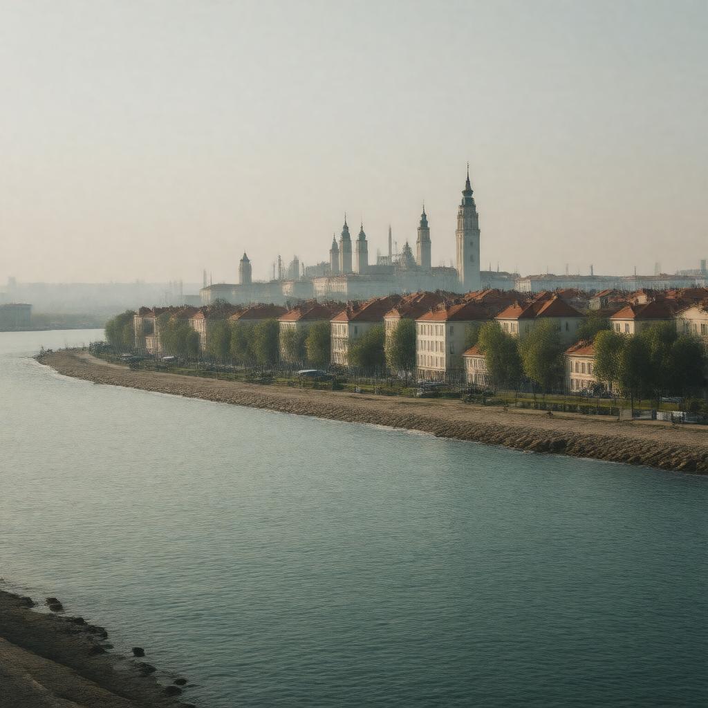"Generate a realistic image of Taganrog, a city located on the shores of the Sea of Azov in Rostov Oblast, Russia, showcasing its scenic coastline, historic architecture, and vibrant cultural scene, with a hint of industrial activity in the background, reminiscent of its rich history dating back to its founding by Peter the Great in 1698."