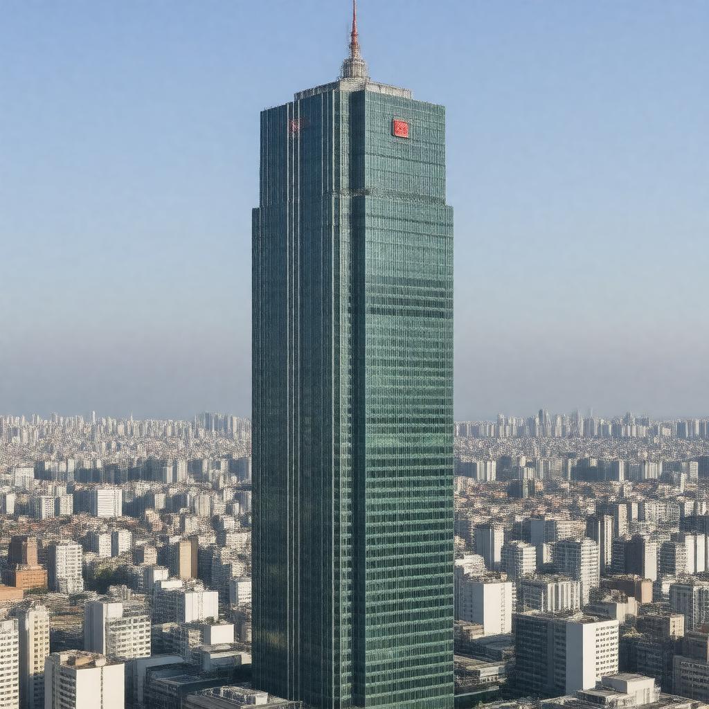 "Generate an image of Taipei 101, a postmodern skyscraper located in Taipei, Taiwan, showcasing its distinctive design and 101 floors, surrounded by the cityscape, with a focus on its steel, glass, aluminum, and concrete structure, and notable features such as its tuned mass damper and observation deck, in a daytime setting with a clear blue sky."