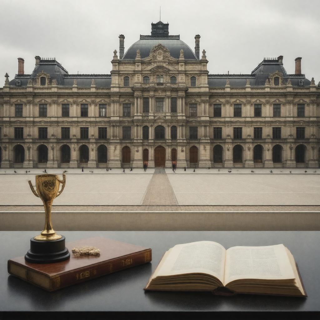 Generate an image of a realistic depiction of the European Parliament or a similar EU institution building in Brussels, Belgium, with a subtle hint of literary or prize elements in the surroundings, such as a book or a prize trophy nearby, set against a backdrop that reflects the architectural style of Brussels, during daytime, to represent "The Capital", a literary fiction novel by Robert Menasse.