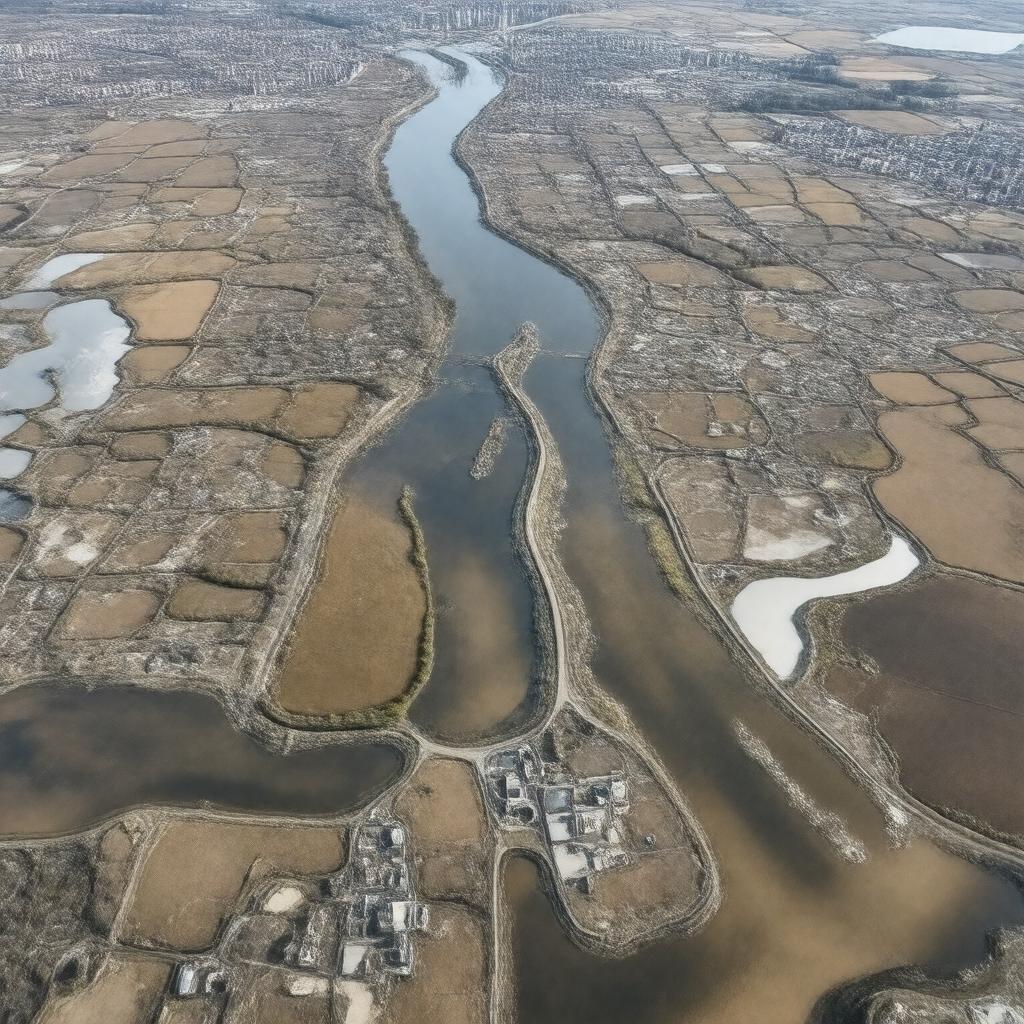 "Generate an image of a low-lying landscape with artificial drainage channels, dykes, and polders, representing The Fens, a vast wetland area in eastern England, East Anglia, characterized by peat soils, historically flooded but drained by Dutch engineers led by Cornelius Vermuyden, featuring Ely Cathedral, a major city like Ely, and wading birds, under a temperate climate, with an emphasis on its agricultural land use and unique geological features."
