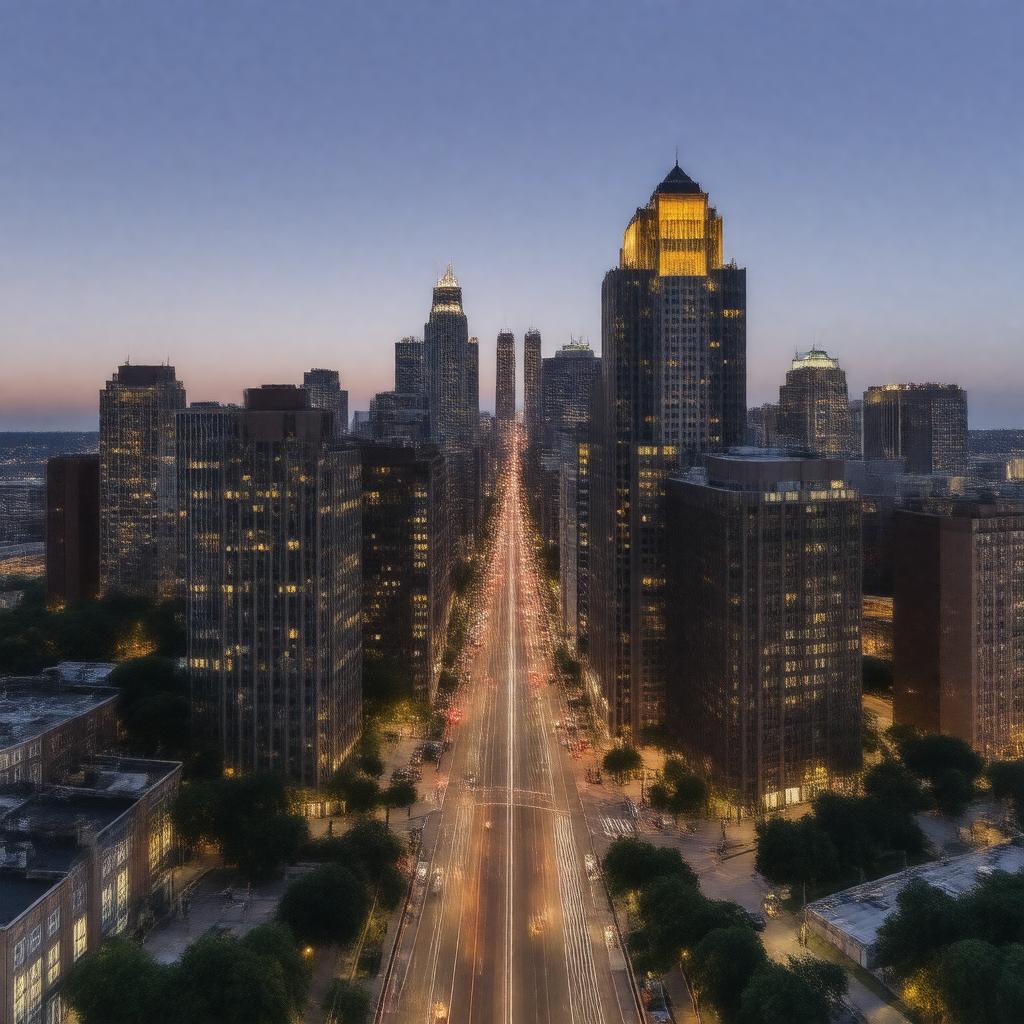 "Generate an image of a vibrant, rapidly growing cityscape at dusk, with a mix of modern skyscrapers, bustling streets, and lush green parks, representing the nickname 'The Magic City' often associated with Birmingham, Alabama, in a realistic and dynamic style."