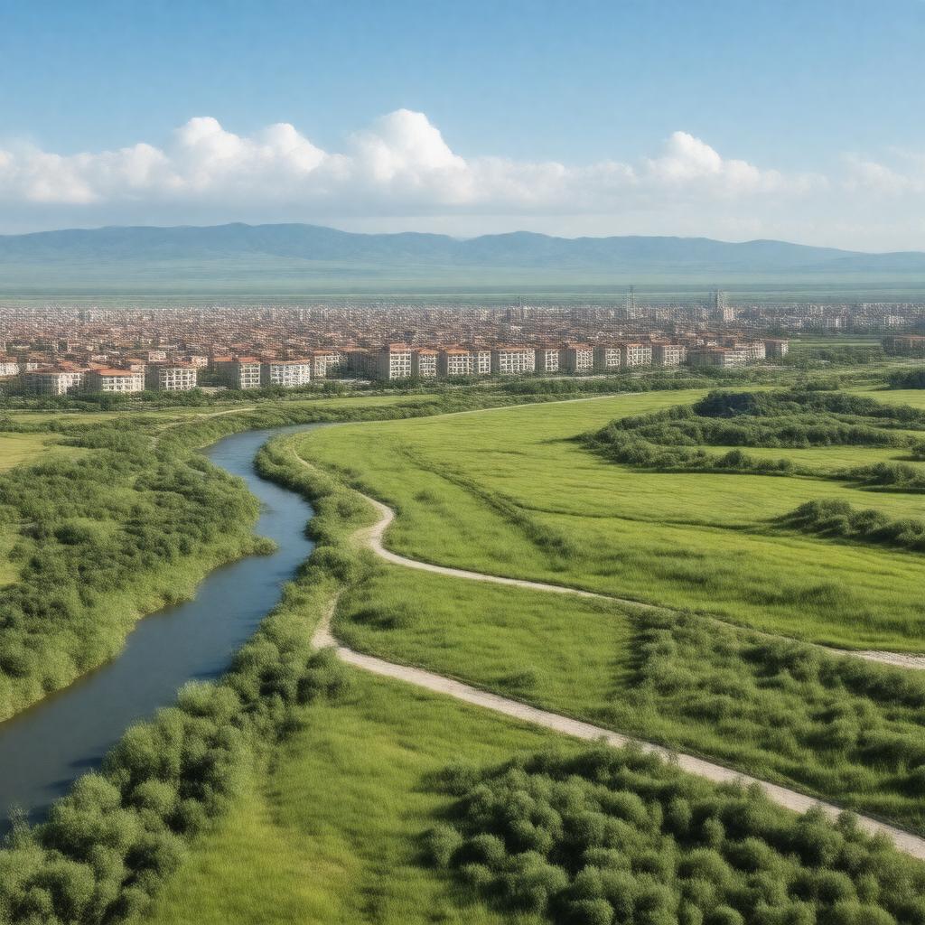 "Generate a realistic image of Tongliao city in Inner Mongolia, China, showcasing its vast Horqin Grassland and the Xiliao River, with a mix of Mongolian and Chinese architectural styles in the background, under a clear blue sky with a hint of continental climate characteristics, representing the prefecture-level city's diverse culture and geography."