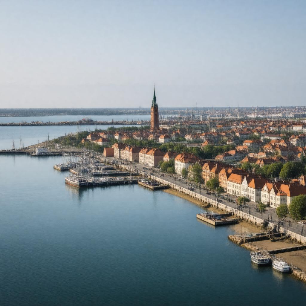 "Generate a realistic image of Tricity, a metropolitan area in Poland, comprising Gdańsk, Gdynia, and Sopot, showcasing its coastal location on the Baltic Sea, with a bustling port, historic and modern architecture, and vibrant cultural scene, highlighting its popularity as a tourist destination."