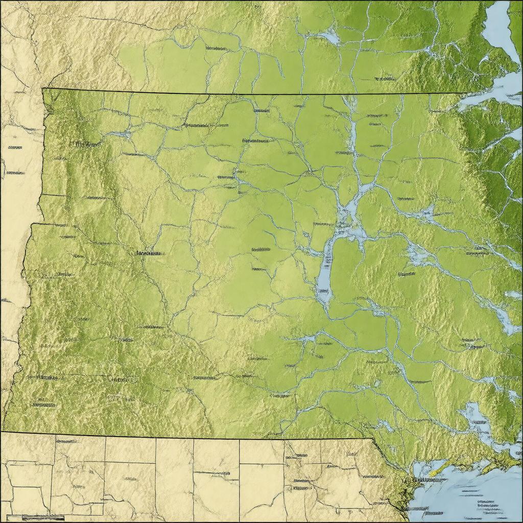 "Generate an image of a map of Nebraska, a state located in the Midwestern United States, with its geographical features and notable landmarks, using a realistic style."