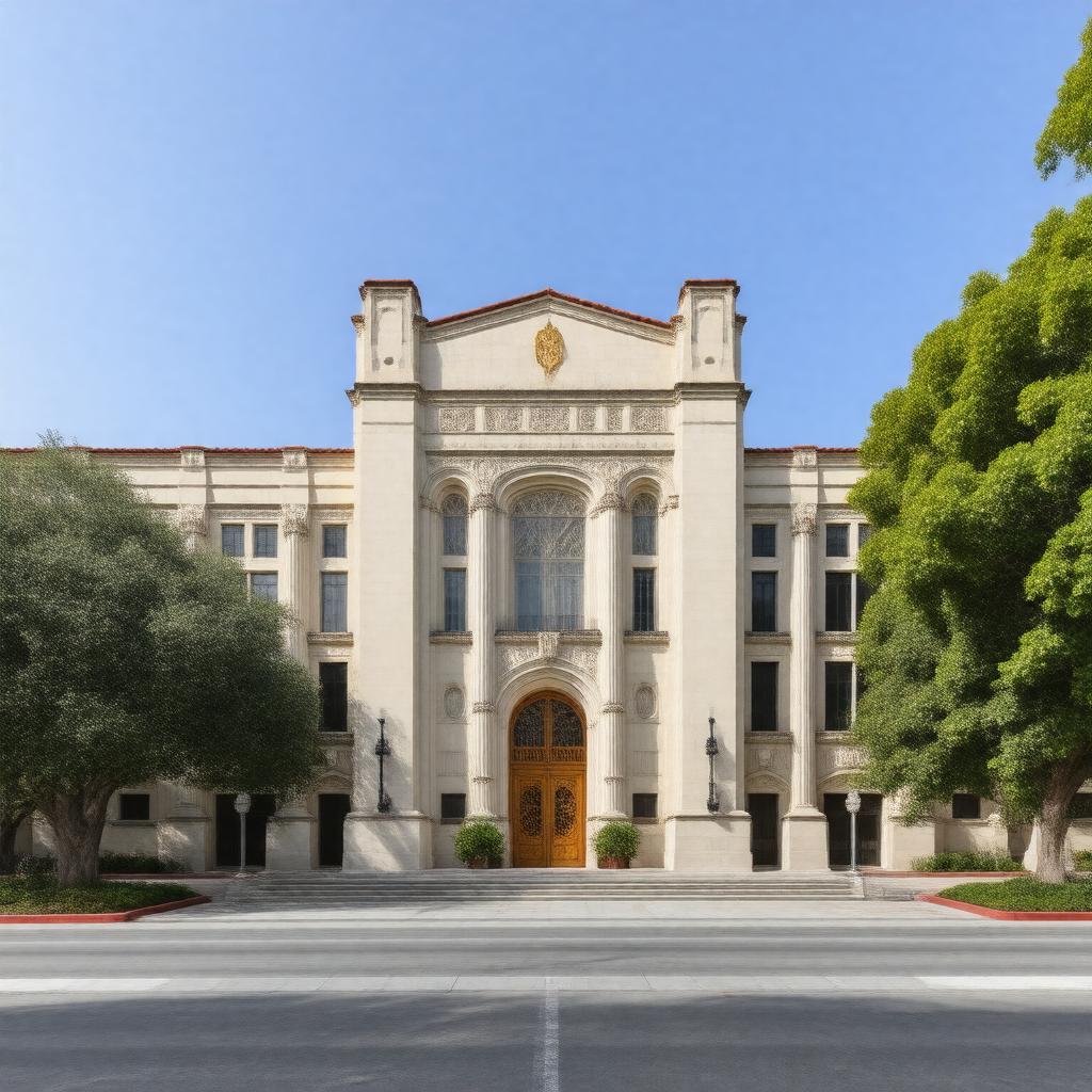 "Generate an image of the USC School of Dramatic Arts building, a prestigious drama school located on the University of Southern California's University Park Campus in Los Angeles, United States. The image should showcase the exterior of one of its notable buildings, such as the Bing Theatre, Scene Dock Theatre, Massman Theatre, or McClintock Theatre, in a realistic style. The building should be depicted in a daytime setting, with a clear view of its architectural features and surroundings."