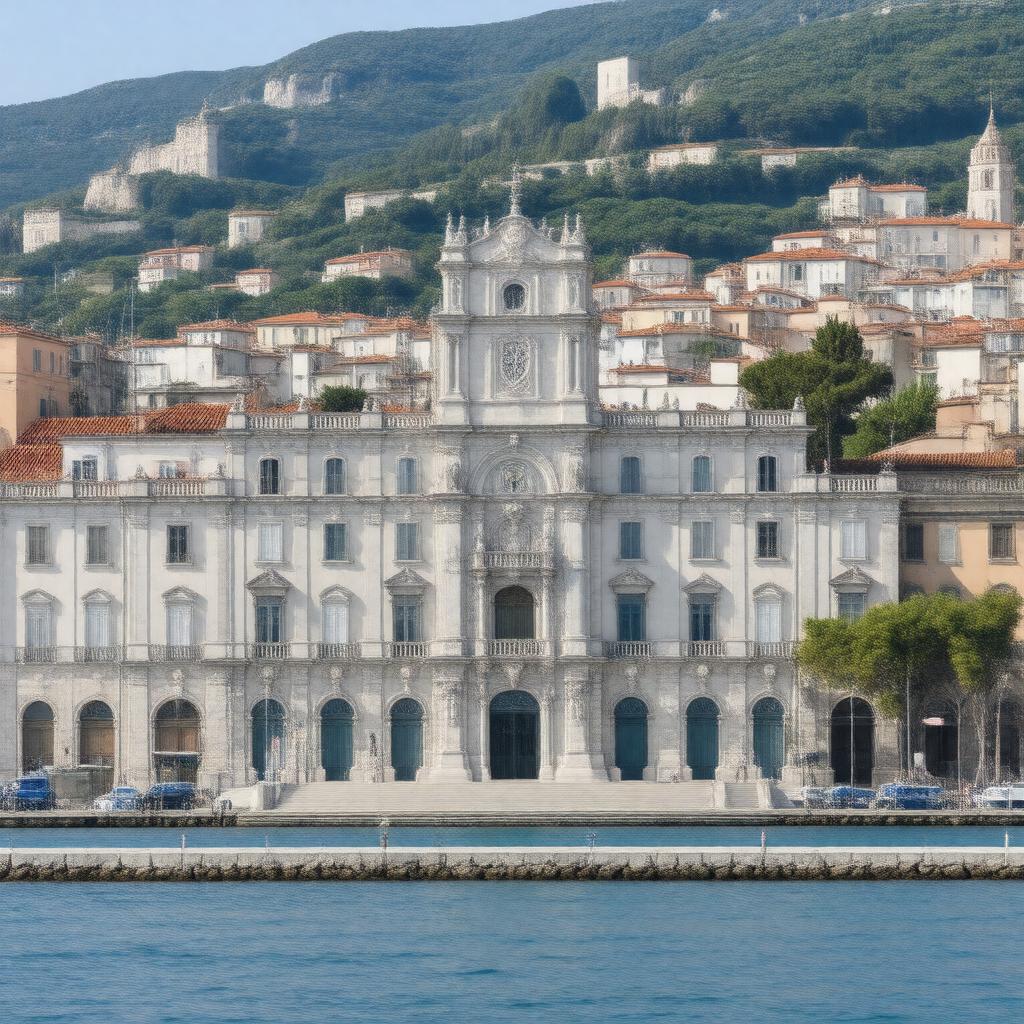 "Generate an image of the historic University of Genoa, a public university located in the urban campus of Genoa, Liguria, Italy. The image should feature the university's iconic architecture, possibly with a glimpse of the city's port or medieval buildings in the background. Incorporate the colors blue and white, the university's official colors, in the scene, perhaps through flags, banners, or building details. The style should be realistic and convey a sense of history and academic excellence, reflecting the university's founding in 1481 and its membership in prestigious associations like the Coimbra Group and European University Association."