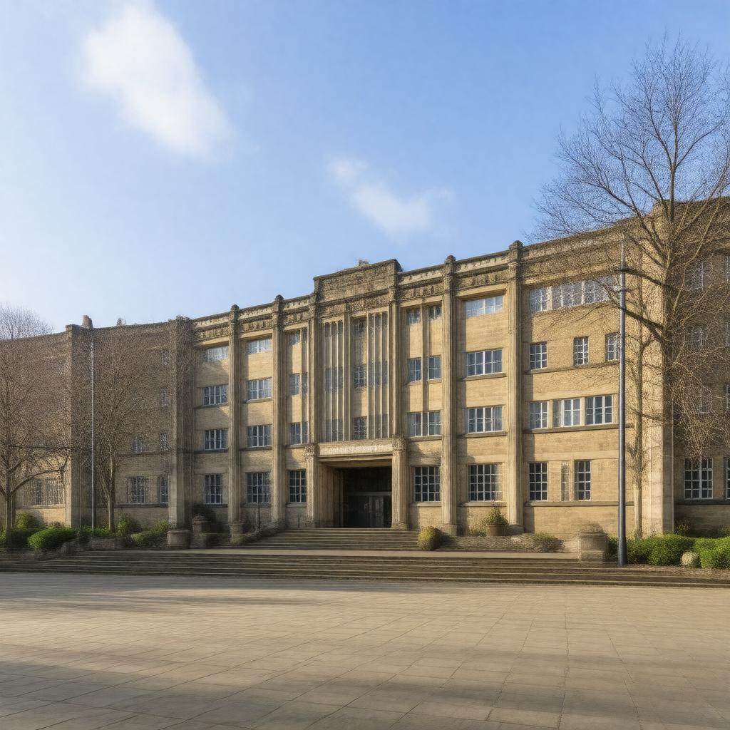 "Generate an image of the University of Huddersfield, a public university located in Huddersfield, West Yorkshire, England, showcasing its main building, possibly the Creative Arts Building, Oastler Building or Student Central, surrounded by the Queensgate Campus, with a mix of modern and traditional architecture, incorporating the university's motto 'Inspiring tomorrow's professionals' in a subtle manner, in a realistic and informative style."