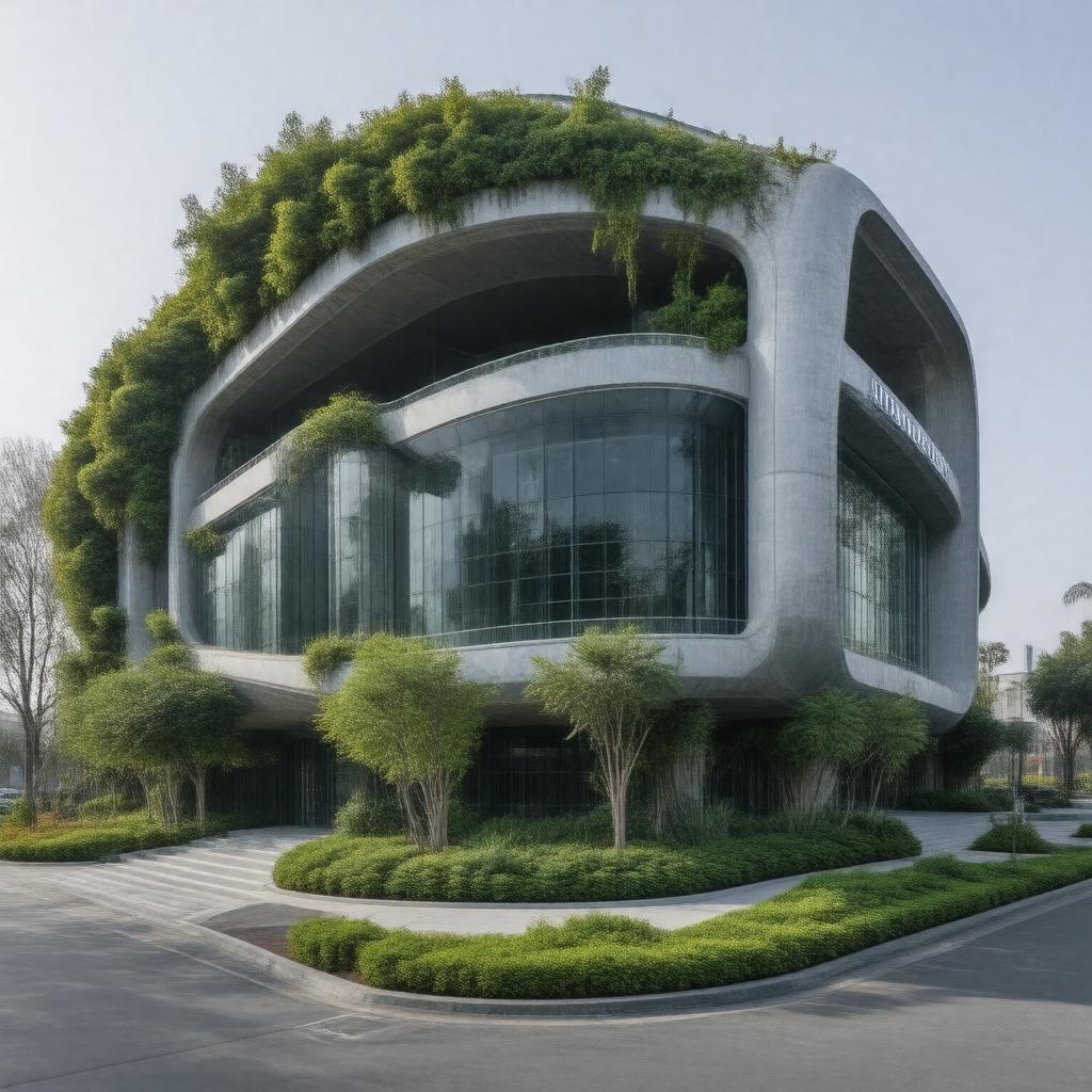 "Generate an image of the Vicarious company headquarters, a modern building located in Union City, California, United States, with a sleek and futuristic design, surrounded by lush greenery, and a subtle hint of robotics and artificial intelligence elements in the architecture, symbolizing the company's focus on AI for robotics automation, with the year 2022 and the Alphabet Inc. logo subtly integrated into the scene, reflecting the company's acquisition."