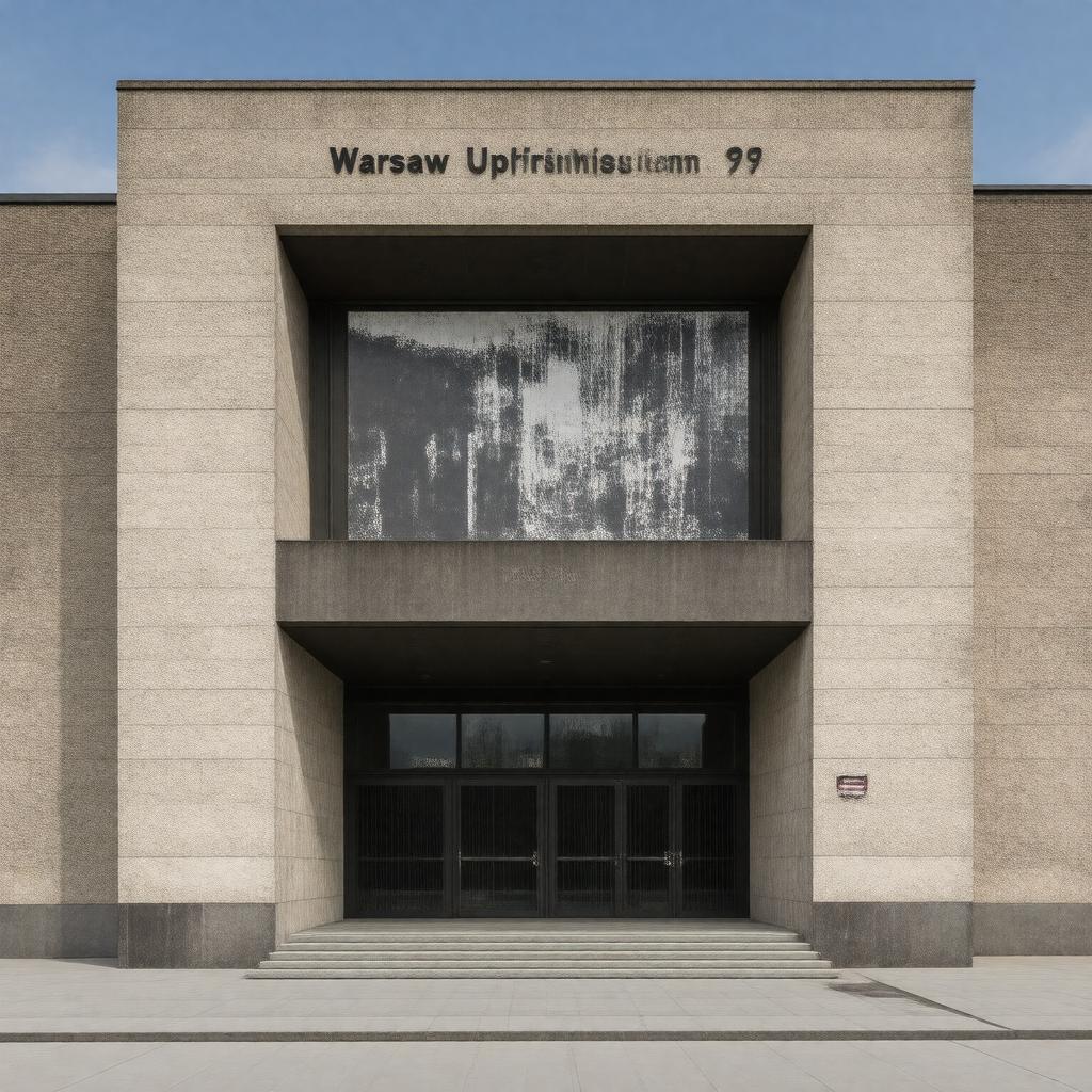 "Generate a realistic image of the exterior of the Warsaw Uprising Museum, located at ul. Grzybowska 79 in Warsaw, Poland, showcasing its modern architecture and surrounding urban landscape, with a style that blends documentary and architectural photography."