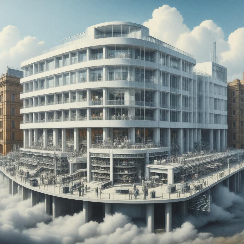 "Create an image of the Wellcome Trust's headquarters in London, with a stylized representation of a biomedical research laboratory in the foreground, symbolizing the organization's focus on medical research and its mission to support science to solve urgent health challenges. Incorporate subtle hints of the organization's rich history and its founder, Sir Henry Wellcome, in the background. Use a professional and modern style, with a predominantly blue and white color scheme to convey a sense of trust and reliability."