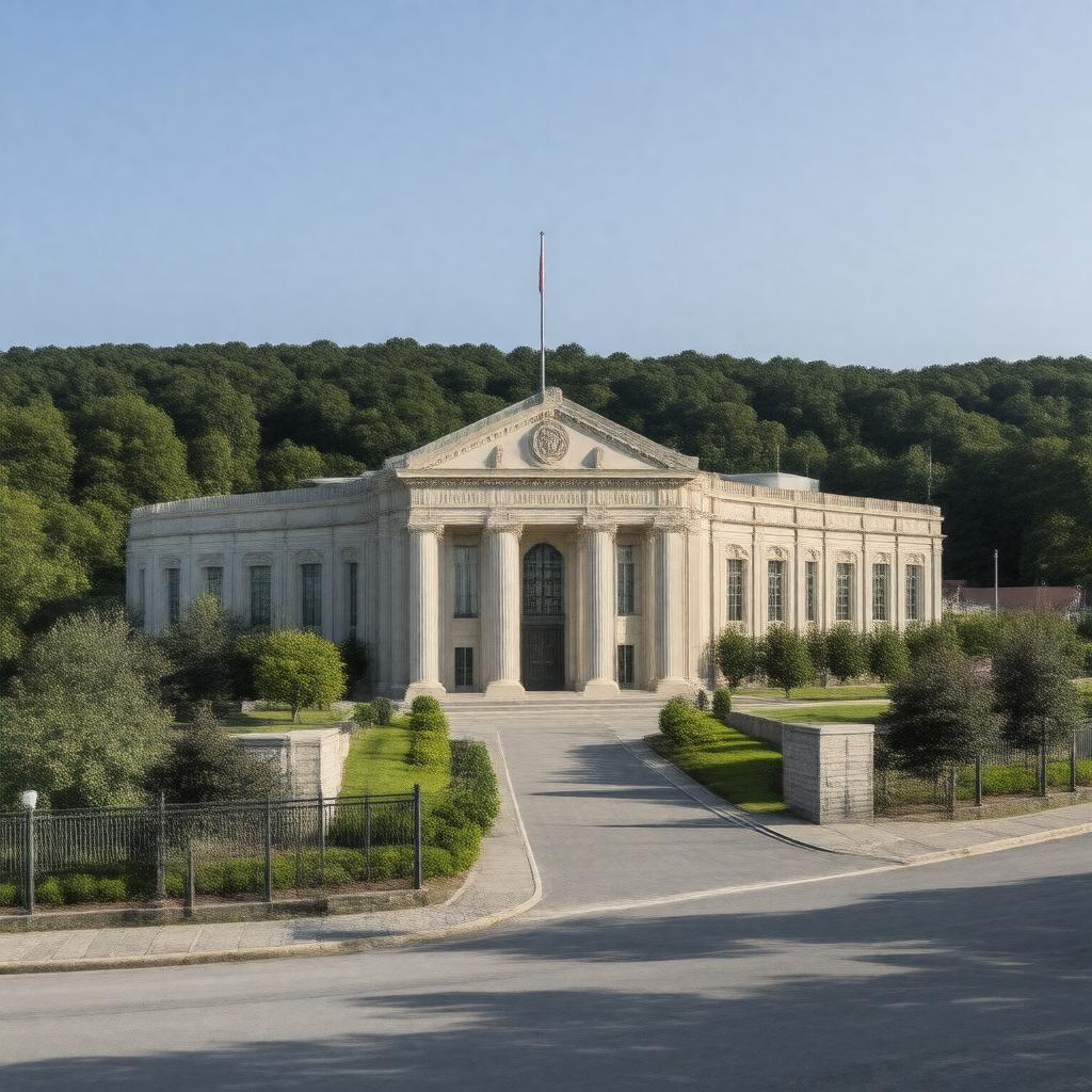 "Generate an image of the West Point Mint facility located in West Point, New York, United States, showcasing its exterior architecture and surroundings, with a focus on its role as a bullion depository and production site for various coins and medals, including American Eagle and American Buffalo coins, with a style that blends realism and official documentation, incorporating elements that reflect its history, purpose, and significance, including its listing on the National Register of Historic Places."