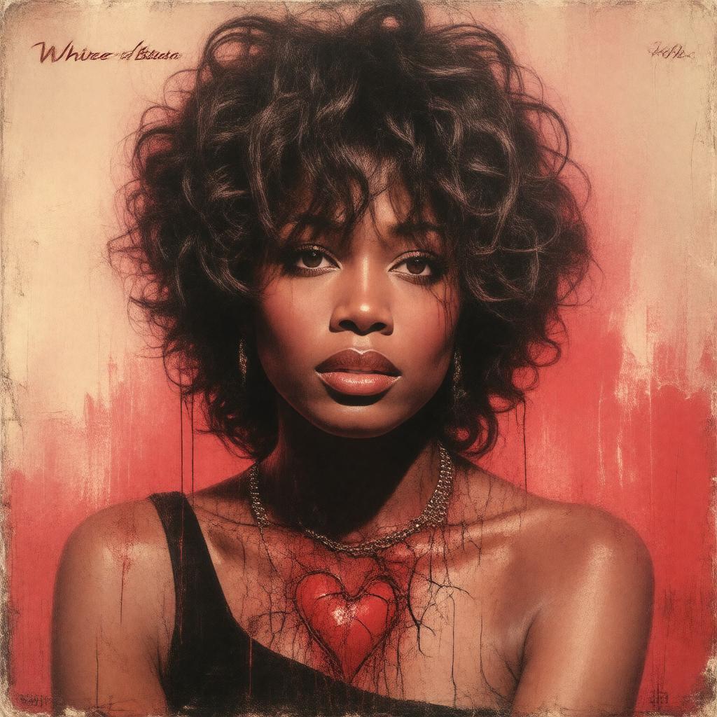 "Generate an image of a vinyl record or CD cover of the song 'Where Do Broken Hearts Go' by Whitney Houston, released in 1988, with a melancholic and heartbroken theme, incorporating elements of 80s R&B and pop music, with a predominantly dark color palette and subtle hints of red to symbolize a broken heart."