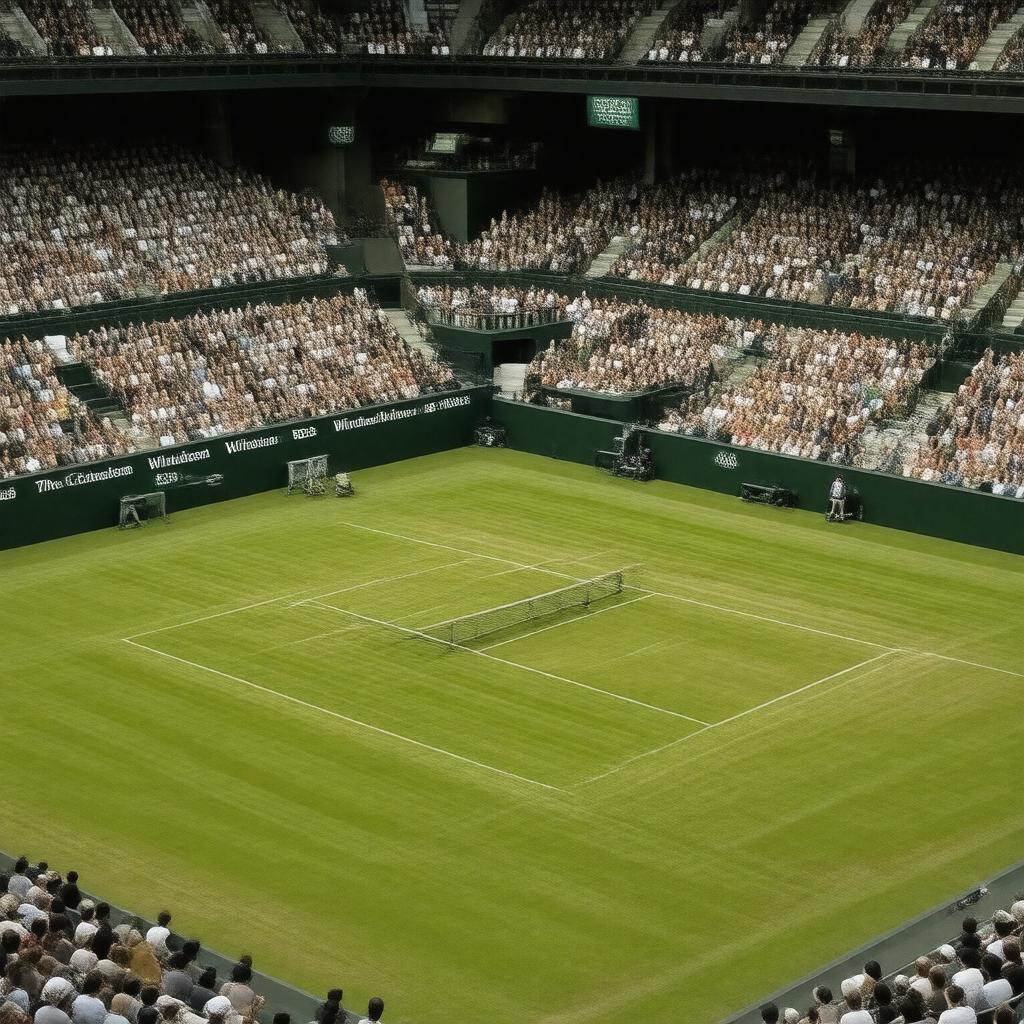 "Generate an image of the 2016 Wimbledon Championships, specifically the iconic Centre Court at the All England Lawn Tennis and Croquet Club in London, with a lush green grass surface, during a match, with a subtle crowd in the background, and a prominent display of the Wimbledon logo and sponsorships; style: realistic and slightly nostalgic, capturing the essence of the 130th edition of The Championships, Wimbledon 2016."