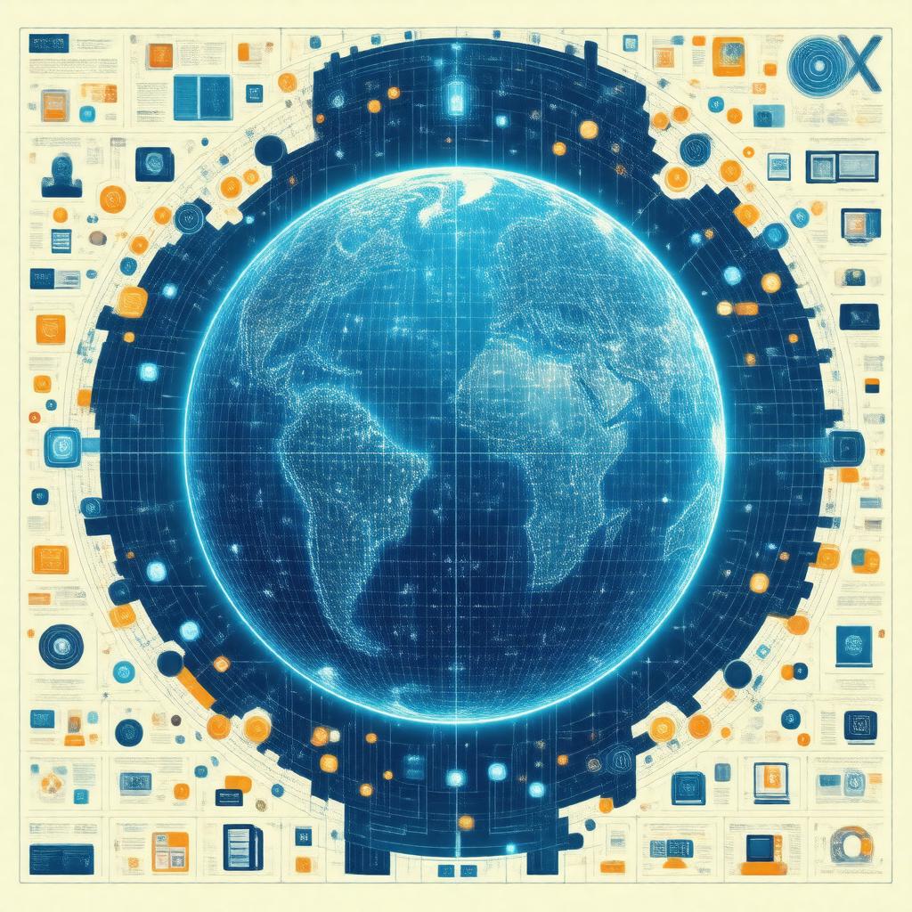"Create an image of a modern, sleek online learning platform interface, with a stylized globe in the background, surrounded by icons representing various subjects such as STEM, humanities, business, and more. Incorporate a subtle pattern of code and circuit boards to reflect the platform's open-source technology, Open edX. Display the edX logo prominently, and include a few partner university logos, such as MIT and Harvard, in the periphery. Use a predominantly blue and white color scheme to convey a sense of trust, innovation, and accessibility. Style: a futuristic, minimalist digital illustration."
