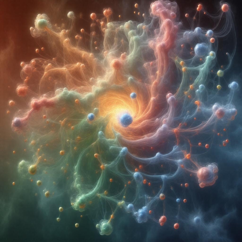 "Generate an image of a vibrant, swirling cloud of colored particles, representing quarks, with various shades of red, green, and blue, surrounded by gluon lines, illustrating their color charge and strong interactions, set against a backdrop of a proton or neutron, highlighting their role as main constituents of hadrons, in a style reminiscent of quantum physics illustrations."
